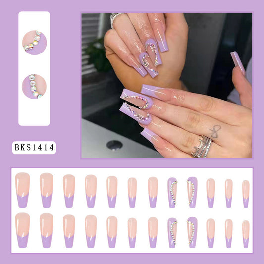 Coffin Extremly Long Bling Press On Nails with Love Heart