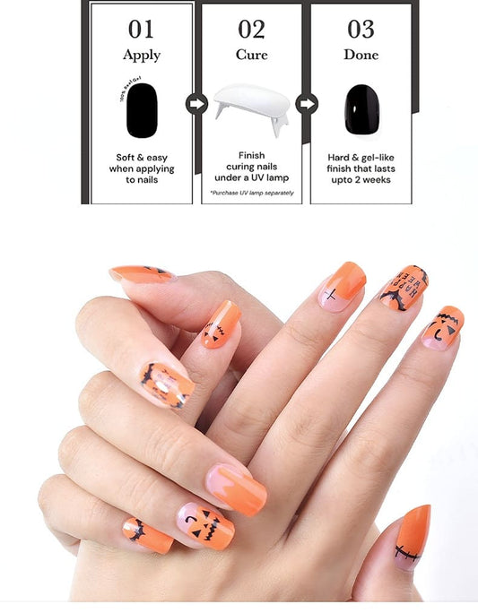 Cexynail Semi Cured Gel Nail Strips for Halloween Decoration