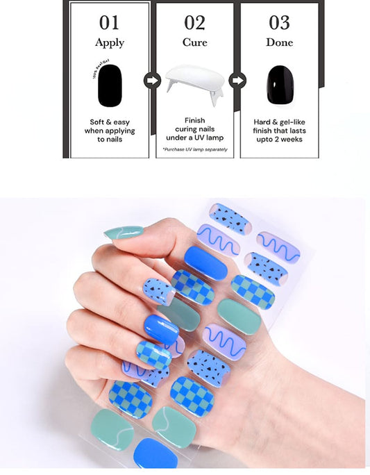 Cexynail Semi Cured Gel Nail Polish Strips Denim Blue
