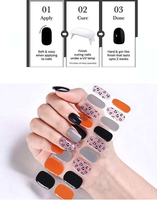 Cexynail Semi Cured Gel Nail Polish Strips Black Orange