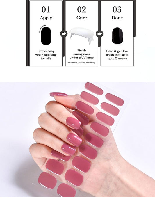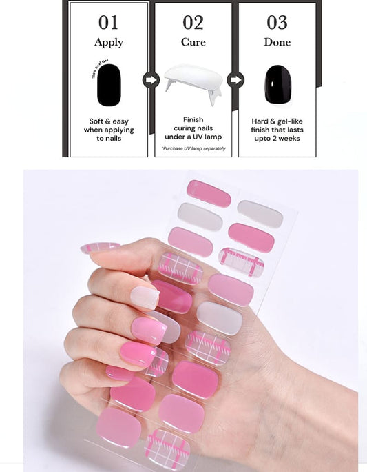 Happy Pink Brown Semi Cured Gel Nail Strips