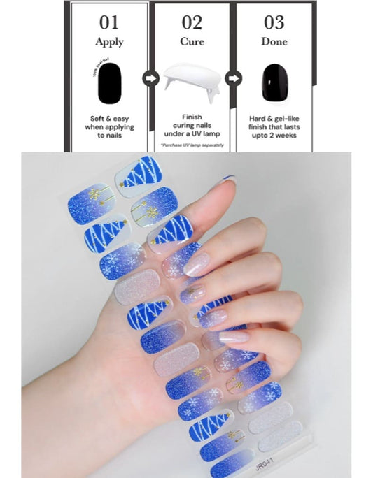 Blue Glitter Snow Nail Semi Cured Gel Nail Strips