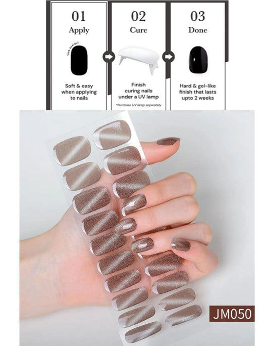 Glitter Cat Eye Nail Semi Cured Gel Nail Strips