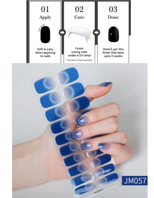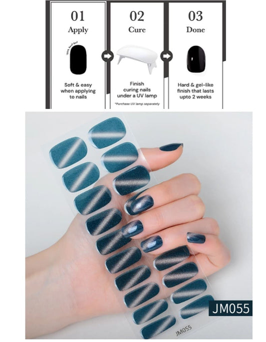 Blue Cat Eye Nail Semi Cured Gel Nail Strips