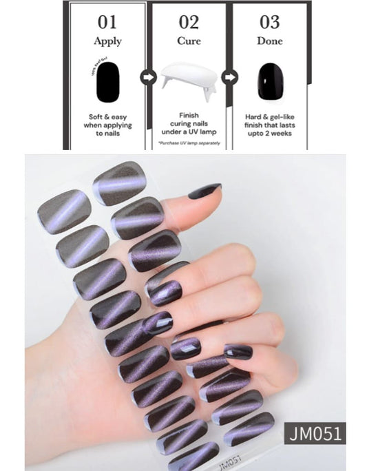 Purple Cat Eye Nail Semi Cured Gel Nail Strips