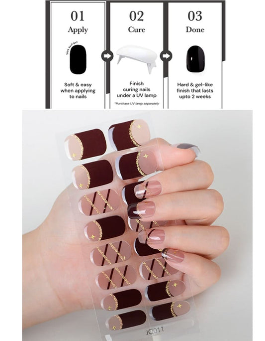 Happy Pink Brown Semi Cured Gel Nail Strips